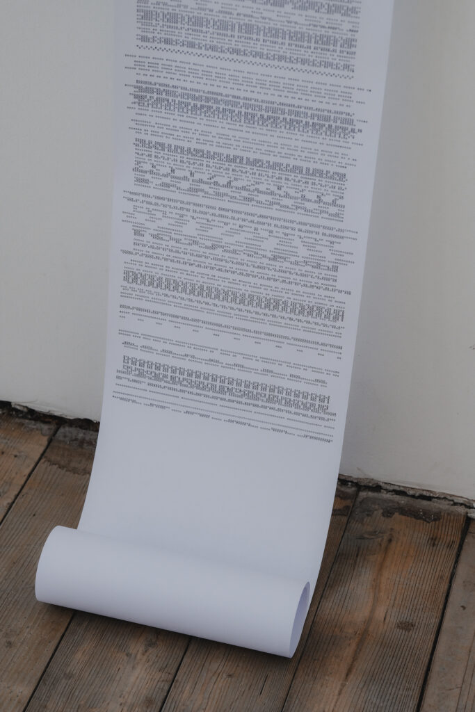 Dimitra Stavropoulou je umetnica iz Aten, ki jo navdihujejo folklora, tradicionalne noše in urbani simboli. Delo Prepletene zanke raziskuje preplet tipa, vzorca in prostora, s poudarkom na meditativnem dejanju ustvarjanja. Z uporabo analogne pisalne stroje se ponavljajoči motivi črke “o” združujejo v ritmično kompozicijo, ki odseva postopek tkanja. Praznine med posameznimi oznakami predstavljajo zrak, bistveni prostor, ki opredeljuje tako obliko kot odsotnost.