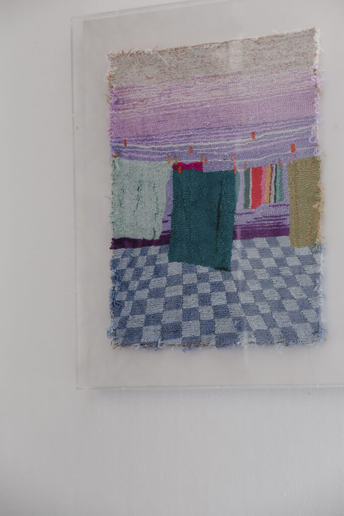 Petra Šabić je hrvaška slikarka in vizualna umetnica, ki v delu Alegorija zraka ob svitu poskuša ujeti vonj sveže posušenega perila. Vpliv zraka v sliki je viden v gibanju tkanine, svetlobi, ki se poigrava na površinah, in nežnem vetriču, ki prinaša vonj morja. Zrak, nosilec svežine in gibanja, je nevidna, a vseprisotna sila med nebom in zemljo. Nežno ziblje tkanino, tih simbol prisotnosti—skromen, a neizpodbiten. V ritmičnem dejanju obešanja perila se skriva občutek reda, pomirjujoč ritual drobnih opravil, bežen, a večen trenutek, napolnjen z nežno lepoto preprostega življenja.